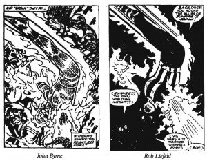 Ah, the good ol’ days. For the record, I was one of the IBIDS who helped gather the swipes, sitting in Glenn Hauman’s apartment, going through Liefeld comics and saying, “HEY!” I think I was the one who found the Byrne ripoff……