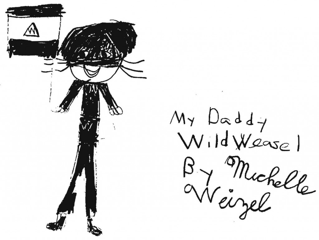 His super-hero name is Wild Weasel. I think it’s a silly name myself. I told him so once. He told me that he had to call himself that because it was so close to his own name, and when you have an own name that could be made into a super name real easy, you’re supposed to do it. He says it’s a rule or something. I don’t know. In the comics, Clark Kent doesn’t sound like Superman and Peter Parker doesn’t sound like Spider-Man, and people seem to like them just fine. Daddy said I’ll understand when I get older.